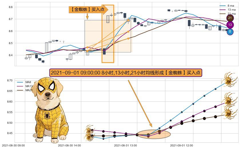 ⚀ 2021-09-01 09:00:00小时显现 8小时-13小时-21小时均线 【金蜘蛛】买入点 看多信号,后市看涨,买入