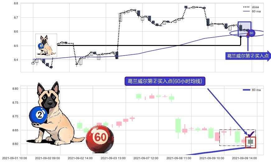 ⚀ 2021-09-09 14:00:00-小时显现 葛兰威尔均线 60小时均线 第②买入点 上升趋势的中继信号,后市看涨,买进信号