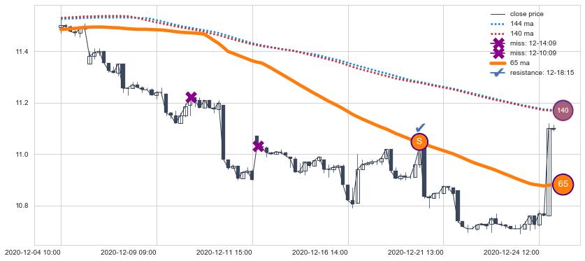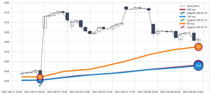 ⚄ 价格在均线获取支撑后再次向上反弹了【极短】距离, 第②买入点 支撑效果【等待验证】