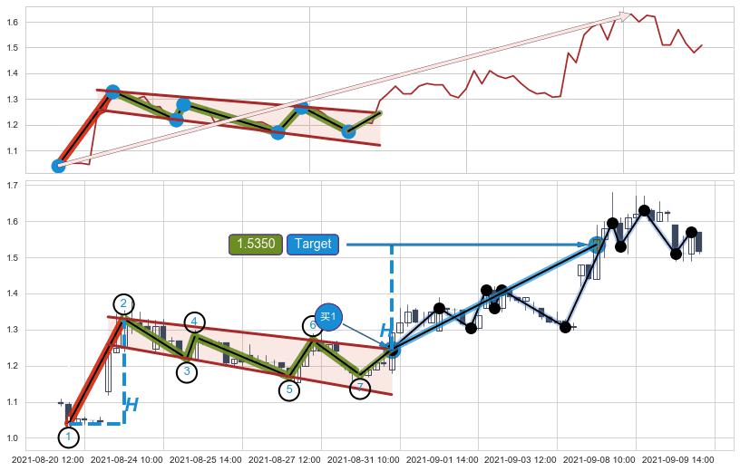 ➣ 最小反转跌幅→𝐇: 0.107500 (头部与颈线垂直距离)