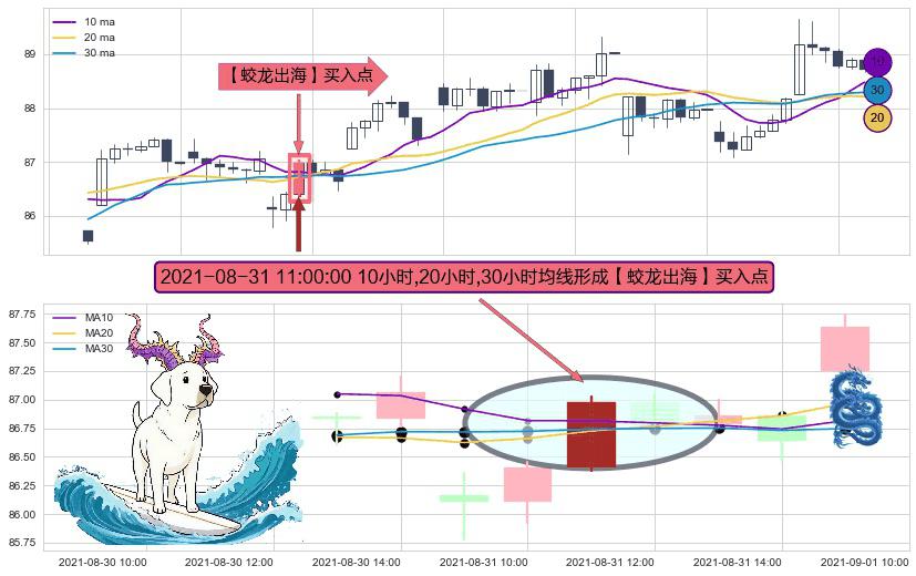 ⚀ 2021-08-31 11:00:00小时显现 10小时-20小时-30小时均线 【蛟龙出海】买入点 看多信号,后市看涨,买入