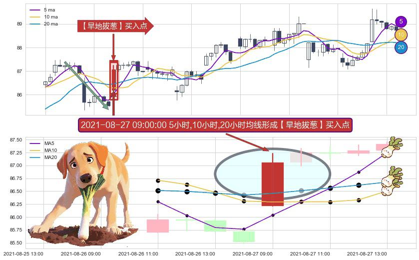 ⚀ 2021-08-27 09:00:00小时显现 5小时-10小时-20小时均线 【旱地拔葱】买入点 看多信号,后市看涨,买入
