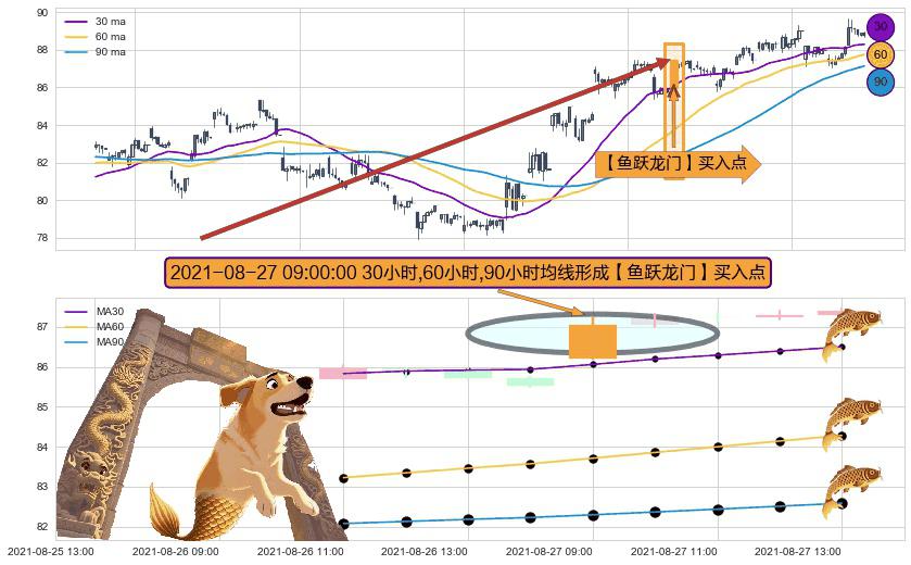 ⚀ 2021-08-27 09:00:00小时显现 30小时-60小时-90小时均线 【鱼跃龙门】买入点 看多信号,后市看涨,买入