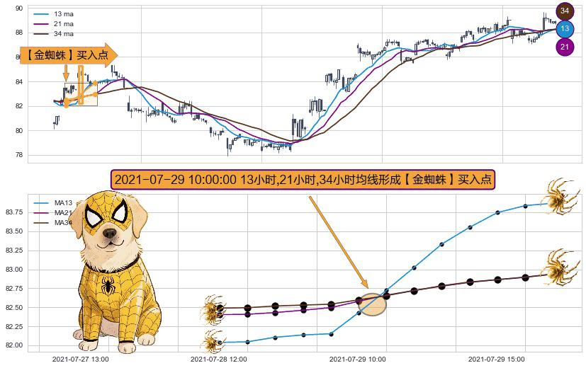 ⚀ 2021-07-29 10:00:00小时显现 13小时-21小时-34小时均线 【金蜘蛛】买入点 看多信号,后市看涨,买入