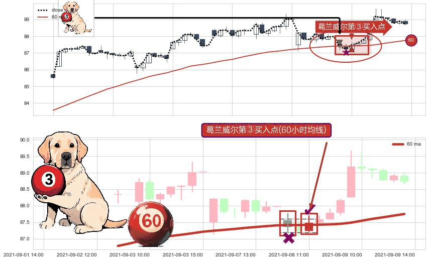 ⚀ 2021-09-08 11:00:00-小时显现 葛兰威尔均线 60小时均线 第③买入点 上升趋势的中继信号,后市看涨,买进信号