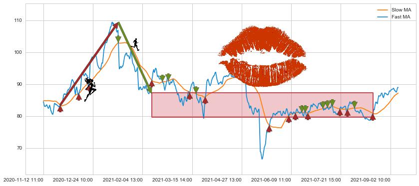 ⚀ 中期均线MA21上穿长期均线MA34形成的交叉是标准 黄金交叉