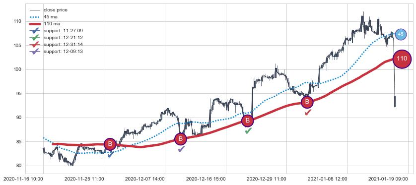 ⚄ 价格在均线获取支撑后已再次向上反弹了【较长】距离, 第②买入点 支撑效果得到【初步确认】