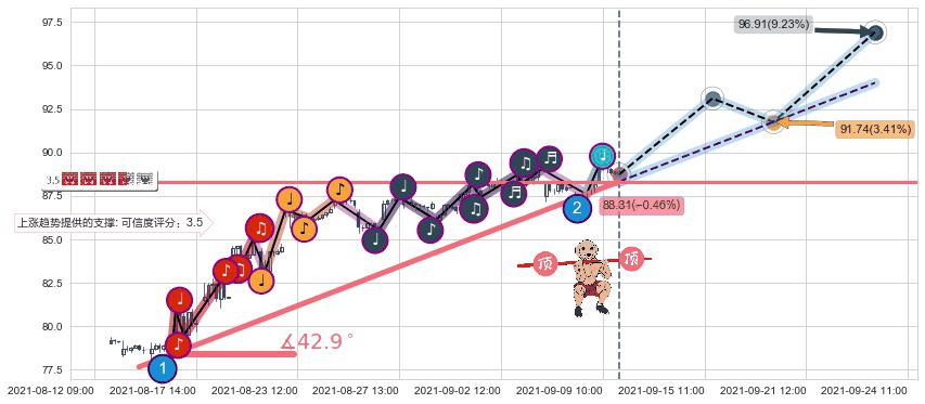 ➢ 预测:2021-09-24 11:00,【继续上扬】稳定目前上涨趋势的前提下,预测价格:96.91