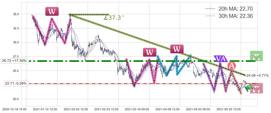 ➣ 【仅预测突破】最后价格:22.78与预测突破价格:27.46→【空间中等】后续最小【反转】第一目标价格→(06-21:14: 33.80 )