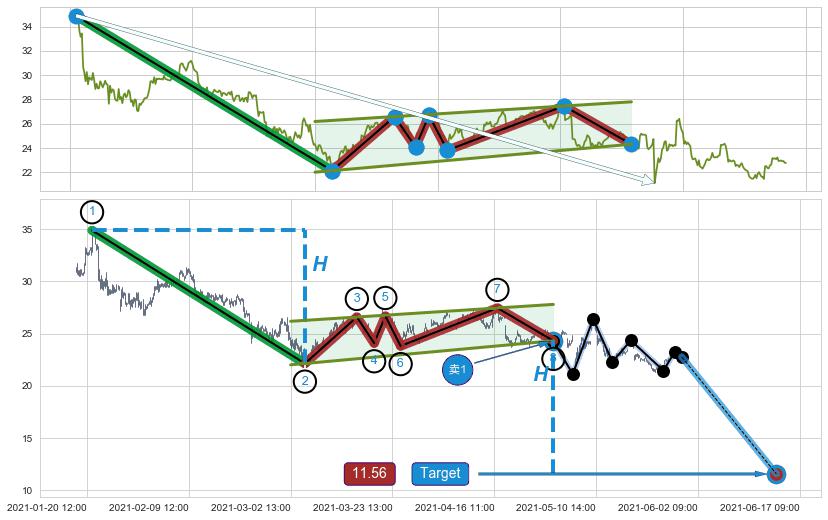 ➣ 最小中继整理跌幅→𝐇: 12.76 (𝐇旗杆的长度:旗杆起点→顶点)