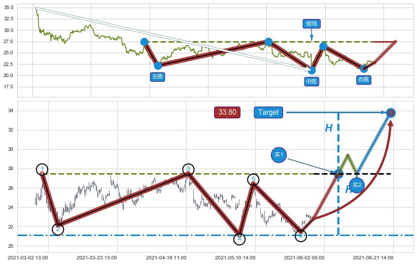➢ AI智能【预测第一最小【反转】目标价格】: 突破后1𝐇→(06-21:14: 33.80 )