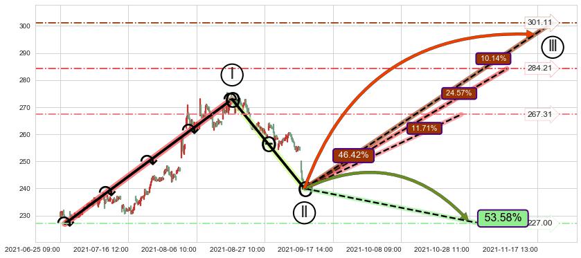 ➢ 循环浪继续向上【最低】位置(10-26:13, 267.31),匹配聚类样本比例25.22%, 可能性概率11.71%