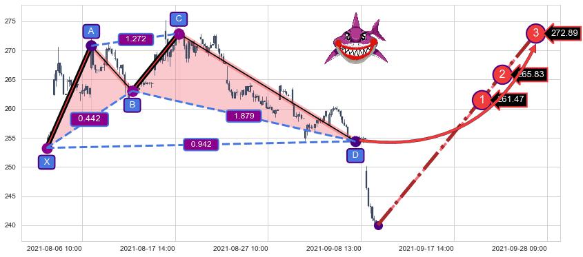| 14 🅚:底部尽头线(上山虎) ➕ 📡:谐波鲨鱼已到达d点:猜想c下行到达d点后报复性拉升上涨(均值回复) ☞ 看多信号 ⇥ 【🅚线】交织【图形】⇥ 综合量化分数: 52 | > |