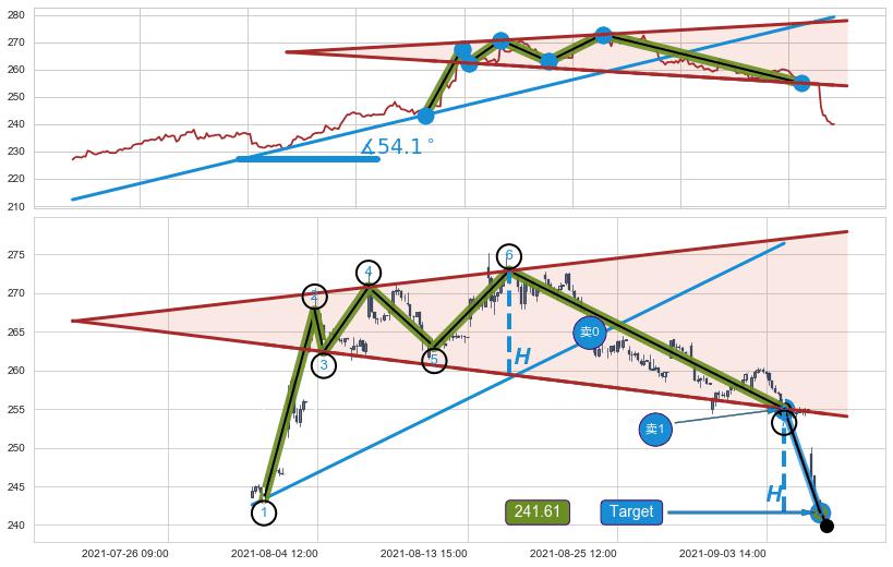 从2021-06-28 09:00至2021-08-23 09:00,共包含265个小时,阶段股价上涨18.69%,阶段股价变动位移路程比: 1 : 4