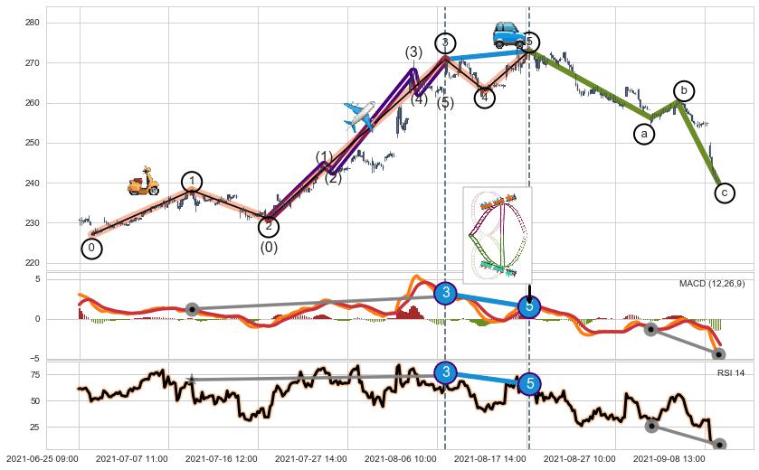➣ a,c调整浪MACD, RSI, KDJ走势都【未出现】背离,abc走势延续, 5浪反转概率增强