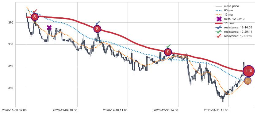 ⚁ 120小时均线 第⑧卖出点 属于 均线服从 信号,属于趋势运行的【常态】即信号期望为下降趋势的中继