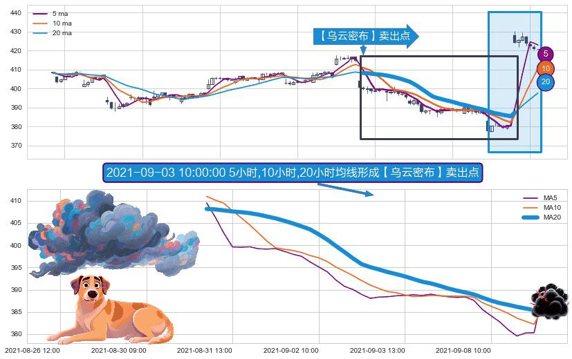 ⚀ 2021-08-31 10:00:00小时-2021-09-09 09:00:00小时显现 5小时-10小时-20小时均线 【乌云密布】卖出点 看空信号,后市看跌,卖出