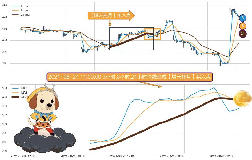 ⚀ 2021-08-20 10:00:00小时-2021-08-26 13:00:00小时显现 3小时-8小时-21小时均线 【烘云托月】买入点 看多信号,后市看涨,买入