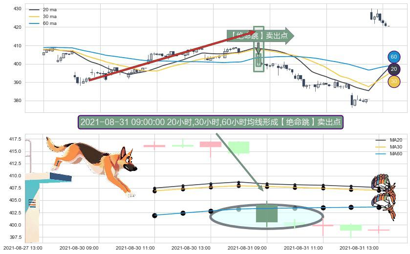 ⚀ 2021-08-31 09:00:00小时显现 20小时-30小时-60小时均线 【绝命跳】卖出点 看空信号,后市看跌,卖出