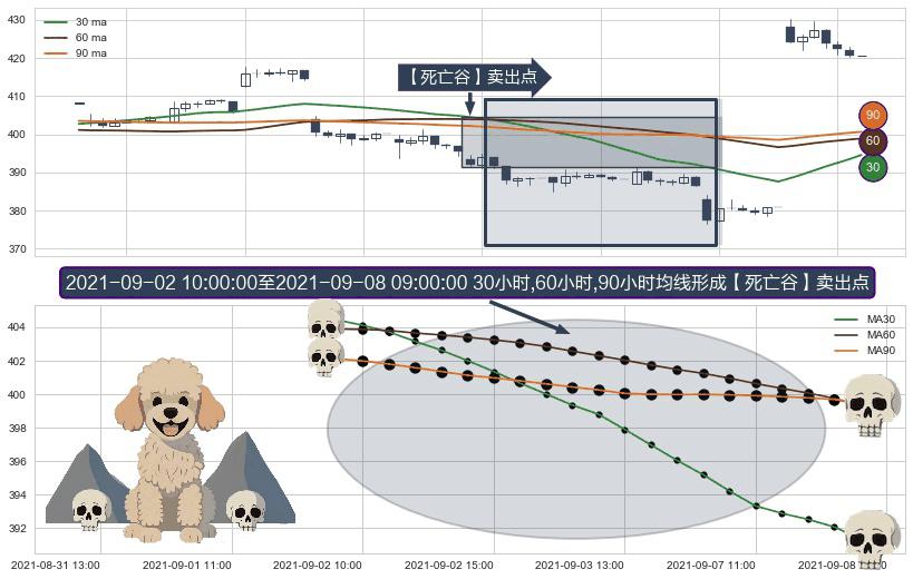 ⚀ 2021-09-02 11:00:00-小时至2021-09-08 09:00:00-小时显现 30小时-60小时-90小时均线 【死亡谷】卖出点 看空信号,后市看跌,卖出