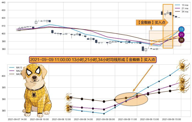 ⚀ 2021-09-09 11:00:00小时显现 13小时-21小时-34小时均线 【金蜘蛛】买入点 看多信号,后市看涨,买入