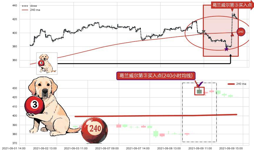 ⚀ 2021-09-09 09:00:00-小时显现 葛兰威尔均线 240小时均线 第③买入点 上升趋势的中继信号,后市看涨,买进信号