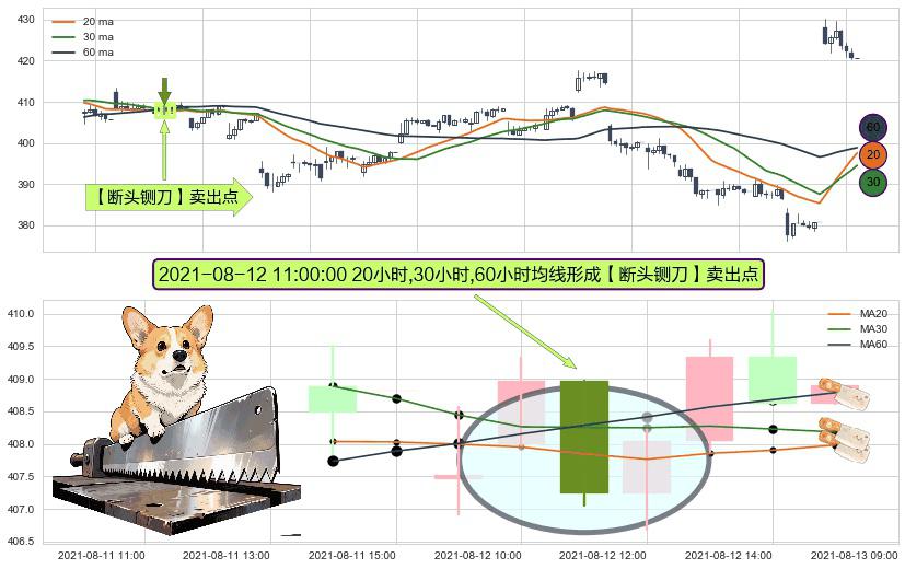 ⚀ 2021-08-12 11:00:00小时显现 20小时-30小时-60小时均线 【断头铡刀】卖出点 看空信号,后市看跌,卖出