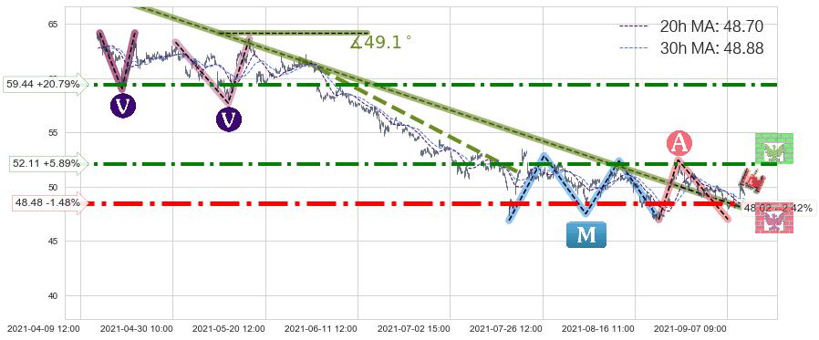 ➢ 【仅预测突破】最后价格:49.21与预测突破价格:51.99→【空间中等】后续最小【反转】第一目标价格→(09-27:15: 56.72 )