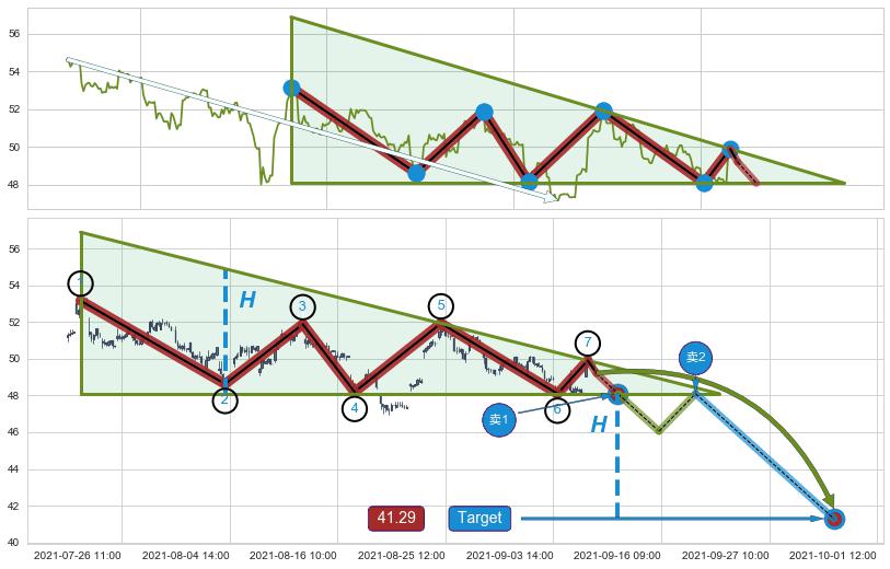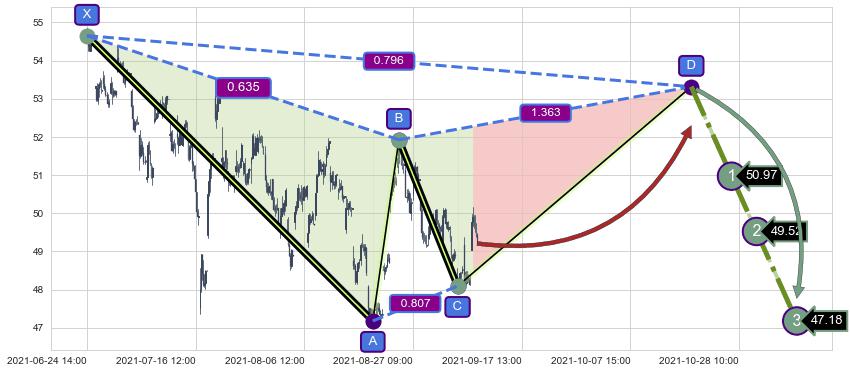 ➣ D点拟合预测价格53.31,距离最后交易收盘价格49.21相差 +8.34%