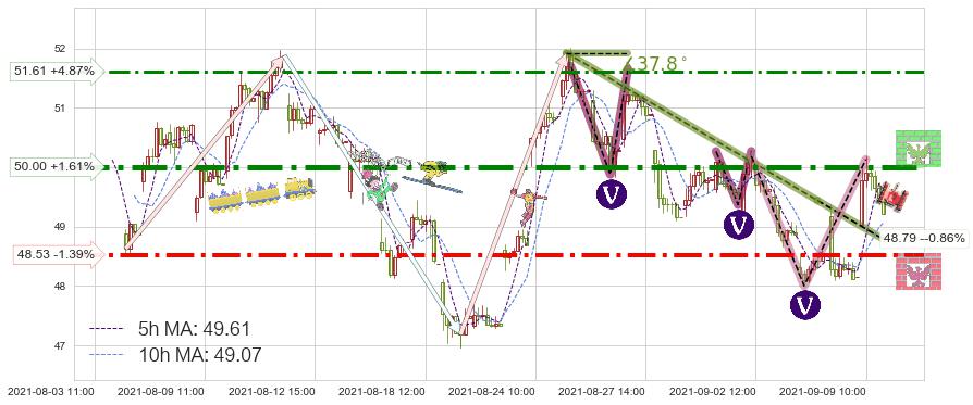 ♘ 阻力价格位50.00,可信任强度93.07%,距离最后交易2021-09-09 14:00形成的收盘价格49.21相差 +1.61%