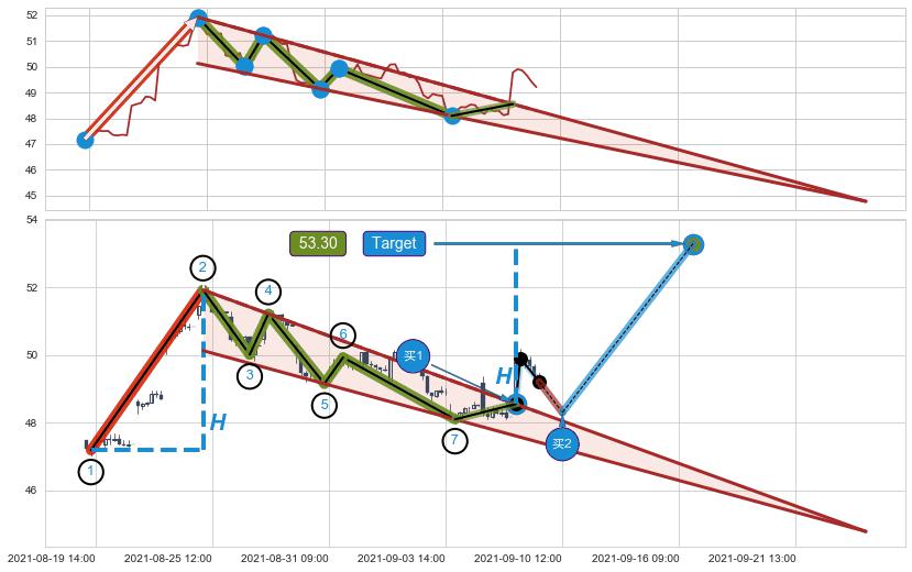 ➢ 最后的下跌趋势2021-08-25 10:00至2021-09-07 13:00:存在突破迹象,后续小反弹或者反转上涨