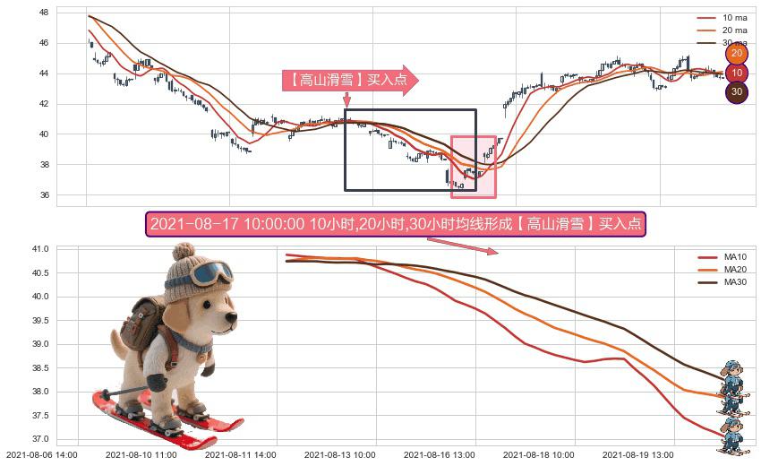 ⚀ 2021-08-11 15:00:00小时-2021-08-20 12:00:00小时显现 10小时-20小时-30小时均线 【高山滑雪】买入点 看多信号,后市看涨,买入