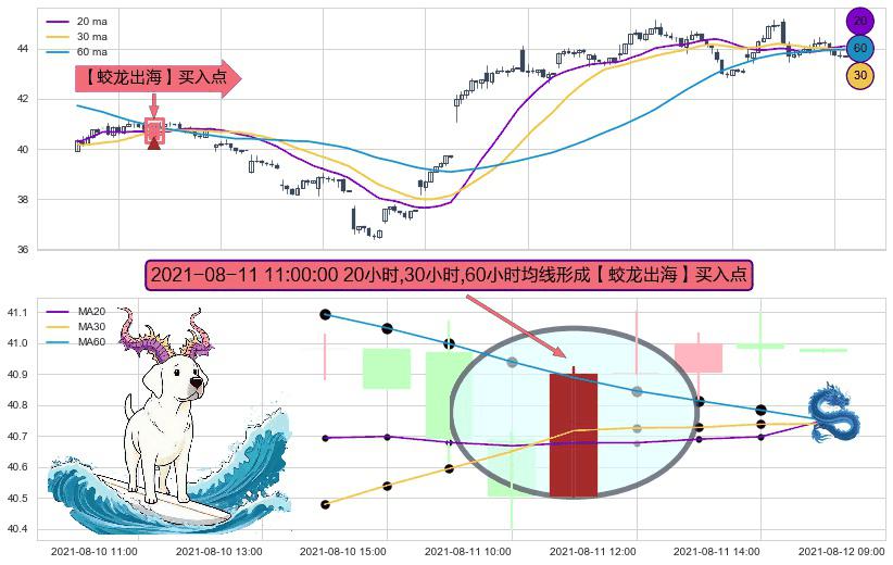 ⚀ 2021-08-11 11:00:00小时显现 20小时-30小时-60小时均线 【蛟龙出海】买入点 看多信号,后市看涨,买入