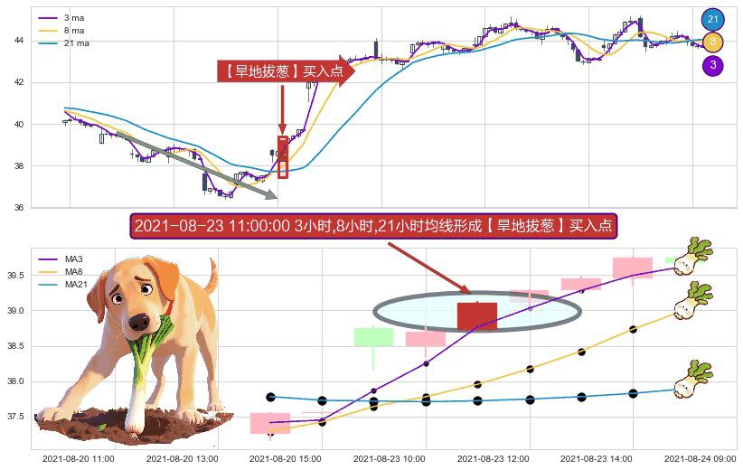 ⚀ 2021-08-23 11:00:00小时显现 3小时-8小时-21小时均线 【旱地拔葱】买入点 看多信号,后市看涨,买入
