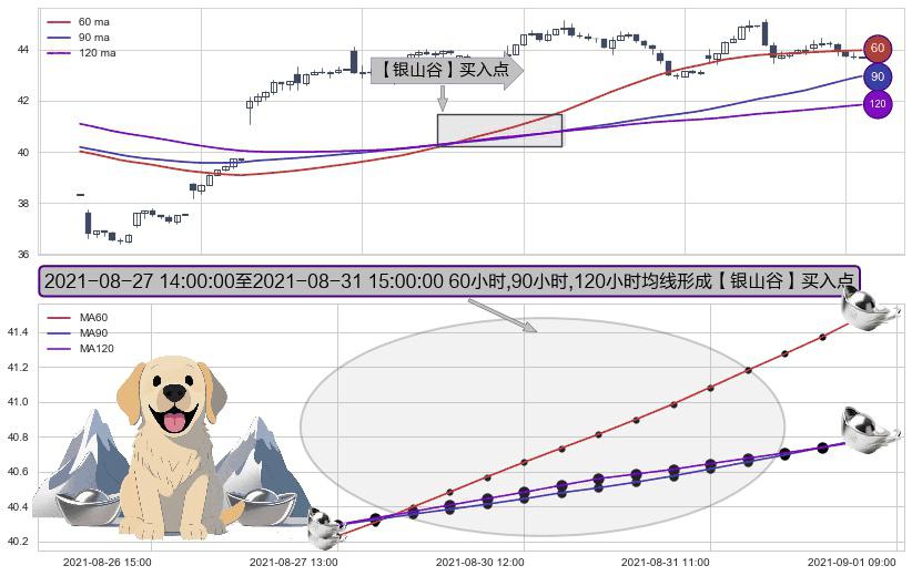 ⚀ 2021-08-30 09:00:00-小时至2021-08-31 15:00:00-小时显现 60小时-90小时-120小时均线 【银山谷】买入点 看多信号,后市看涨,买入