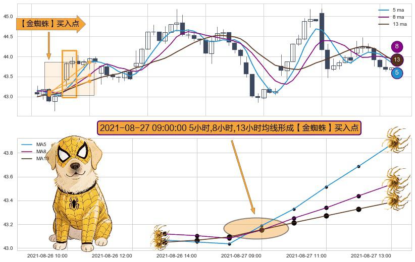 ⚀ 2021-08-27 09:00:00小时显现 5小时-8小时-13小时均线 【金蜘蛛】买入点 看多信号,后市看涨,买入