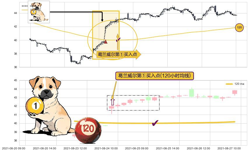⚀ 2021-08-24 09:00:00-小时显现 葛兰威尔均线 120小时均线 第买①入点 走势反转见底信号,后市看涨,买进信号