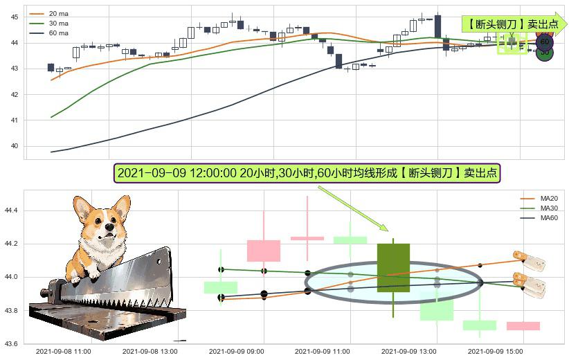 ⚀ 2021-09-09 12:00:00小时显现 20小时-30小时-60小时均线 【断头铡刀】卖出点 看空信号,后市看跌,卖出
