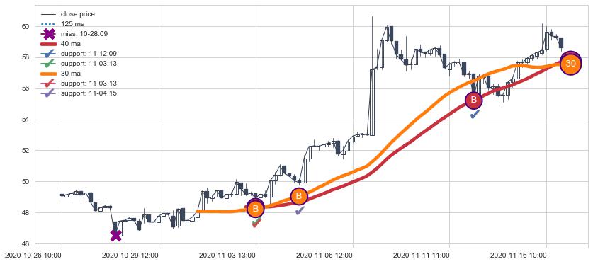 ⚅ 买点向上突破均线后,价格走势很纠结,不断在均线周围试探,有再次下探破位均线的可能
