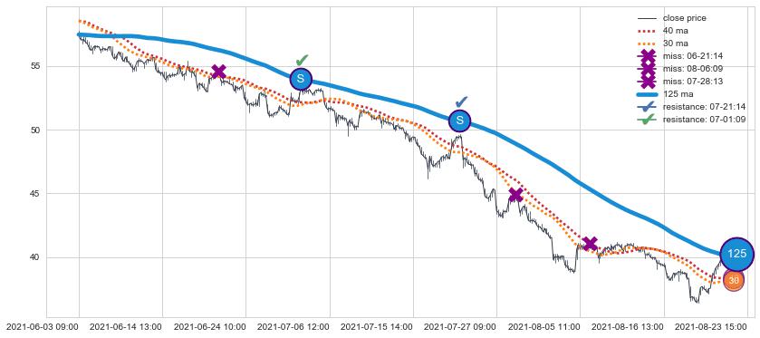 ⚃ 在突破点附近ma依然下降趋势比较明显,平稳迹象是在突破后一段时间后出现,信号【可信度低】