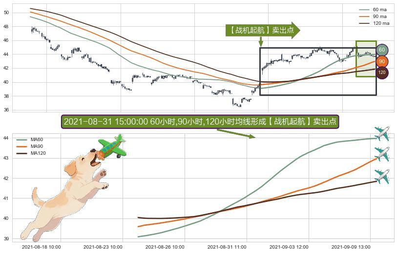 ⚀ 2021-08-23 15:00:00小时-2021-09-09 15:00:00小时显现 60小时-90小时-120小时均线 【战机起航】卖出点 看空信号,后市看跌,卖出