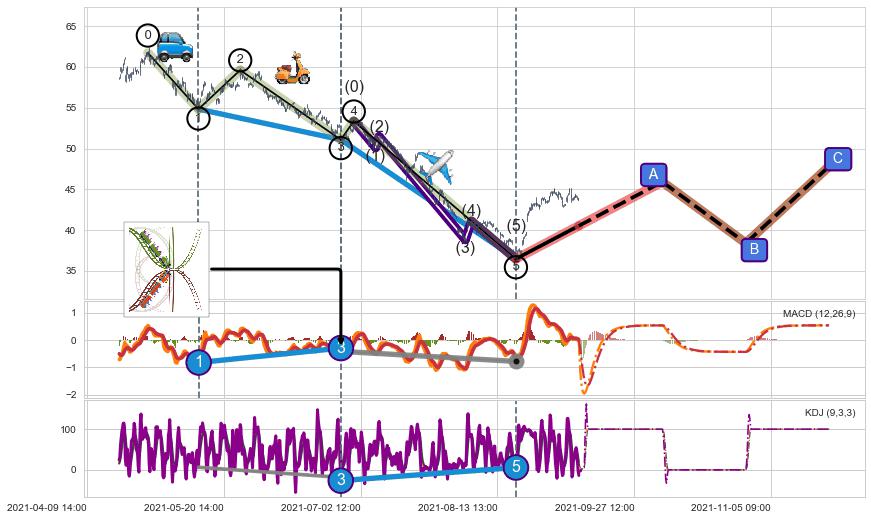 | 6 🅚:【高山滑雪】买入点 ➕ 🌊:波浪理论猜想下跌浪5已形成,猜想后续形成abc反弹上涨(均值回复) ☞ 看多信号 ⇥ 【均线】交织【图形】⇥ 综合量化分数: 56 | > |