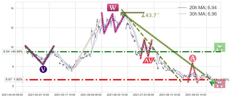 ♞ 20小时均线:6.94,30小时均线:6.96→ 快线<慢线