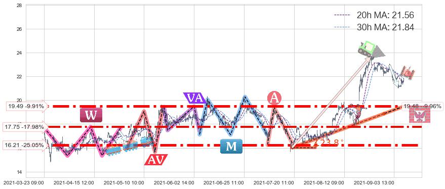 ♘ 支撑价格位19.49,可信任强度86.94%,距离最后交易2021-09-09 14:00形成的收盘价格21.64相差 -9.91%
