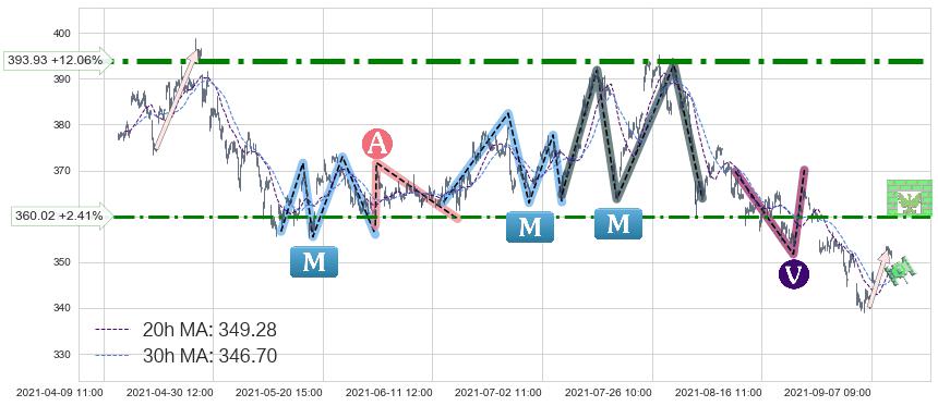 ♘ 阻力价格位360.02,可信任强度57.89%,距离最后交易2021-09-09 15:00形成的收盘价格351.53相差 +2.41%