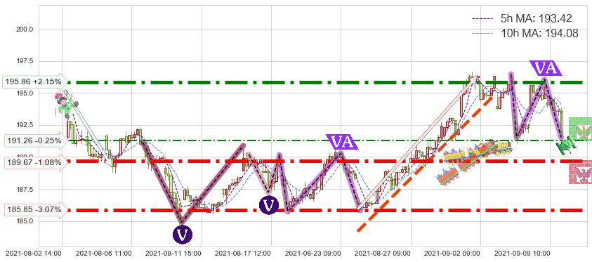 ♘ 阻力价格位195.86,可信任强度92.41%,距离最后交易2021-09-09 14:00形成的收盘价格191.74相差 +2.15%