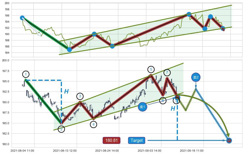 ➣ 最小中继整理跌幅→𝐇: 10.32 (𝐇旗杆的长度:旗杆起点→顶点)