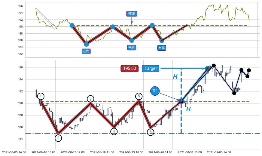 ➢ 图示②④⑥三个波谷均在 190.35 附近成功获得【支撑】→反弹上涨