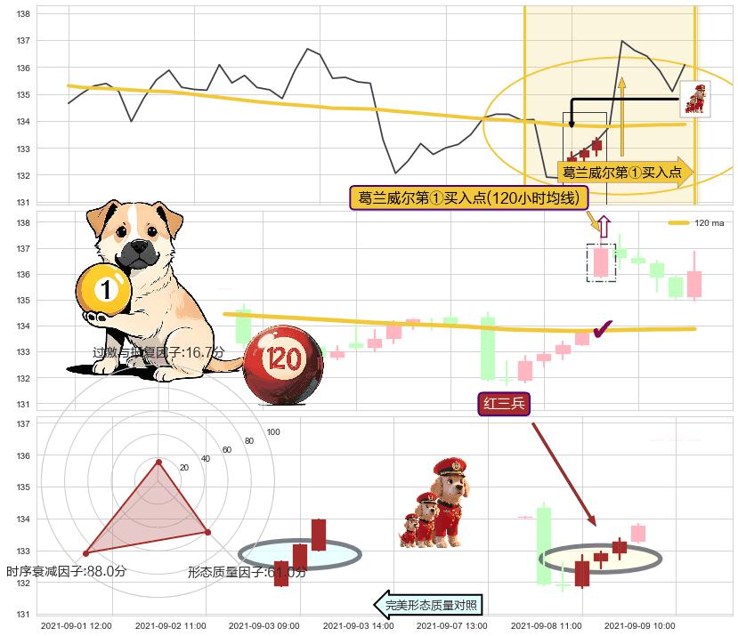 | 3 🅚:锤头线(锤子线) ➕ 🎢:葛兰威尔第①买入点买入点信号形成后,猜想后续下跌趋势反转上涨趋势(均值回复) ☞ 看多信号 ⇥ 【均线】交织【🅚线】⇥ 综合量化分数: 68 | > |