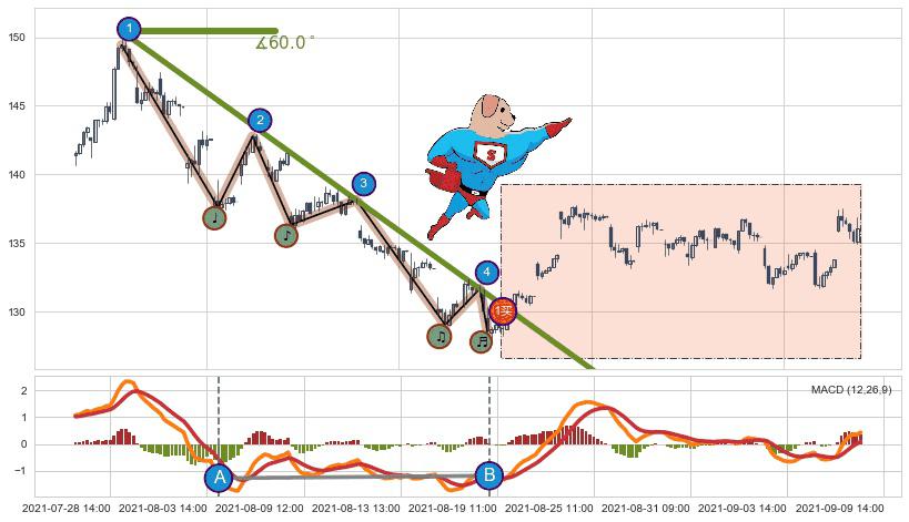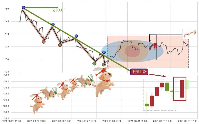 从2021-07-29 11:00至2021-08-23 14:00,共包含114个小时,阶段股价下跌-10.41%,阶段股价变动位移路程比: 1 : 5,下跌趋势角度: 60.0